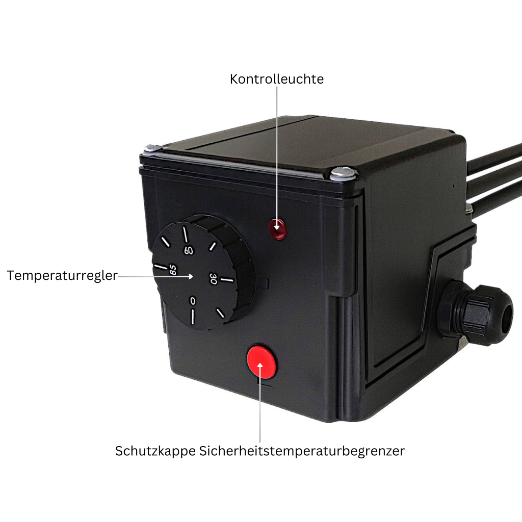 Ein manueller Thermostat ist integraler Bestandteil des Heizelements und ermöglicht die präzise Temperaturregelung. - Thermosicherung: