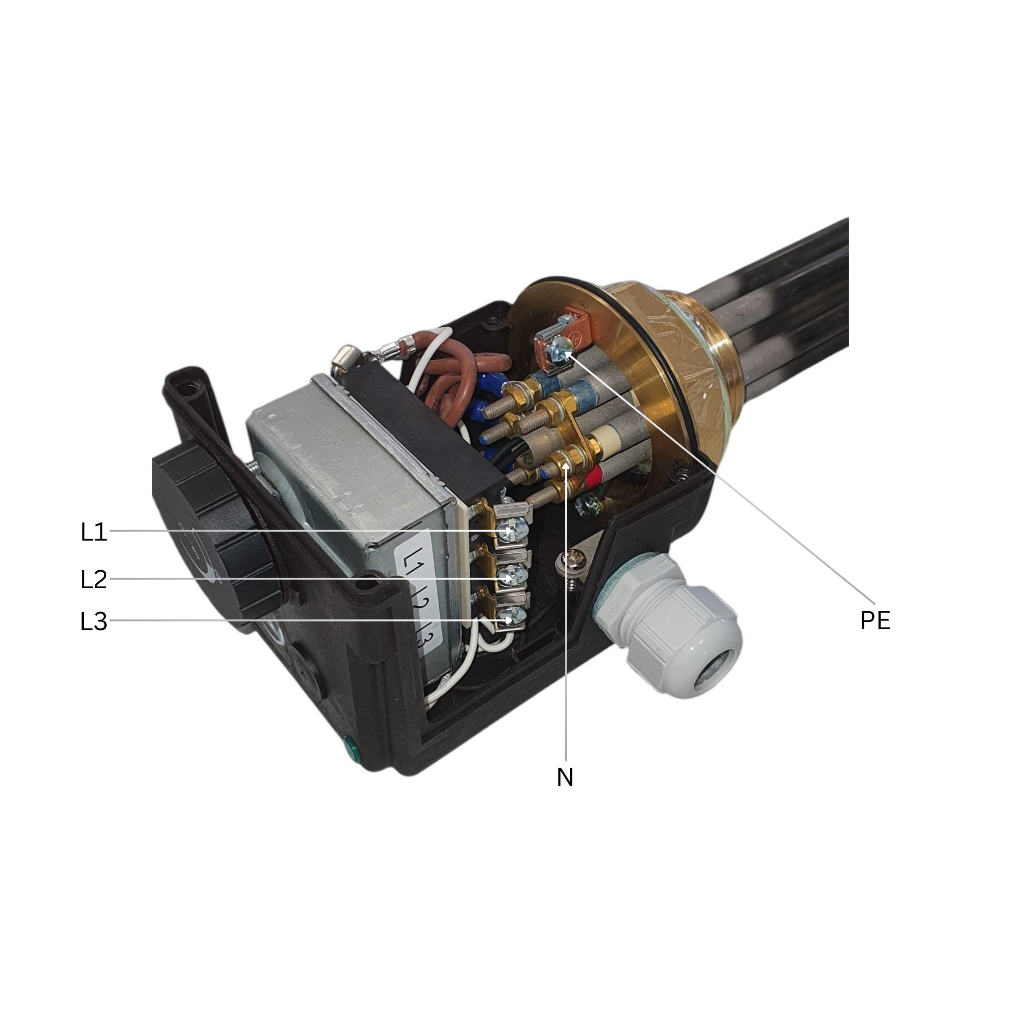 Das Elektroheizelement besteht aus hochwertigem Incoloy 825. Es ist mit einem G6/4 Messingkopf verbunden. - Klemmenleiste: