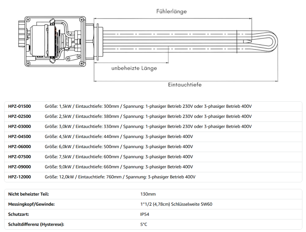 - Nur isolierte Heizpatronen sind für Brauchwasserspeicher geeignet. Bitte bei Bestellung beachten!