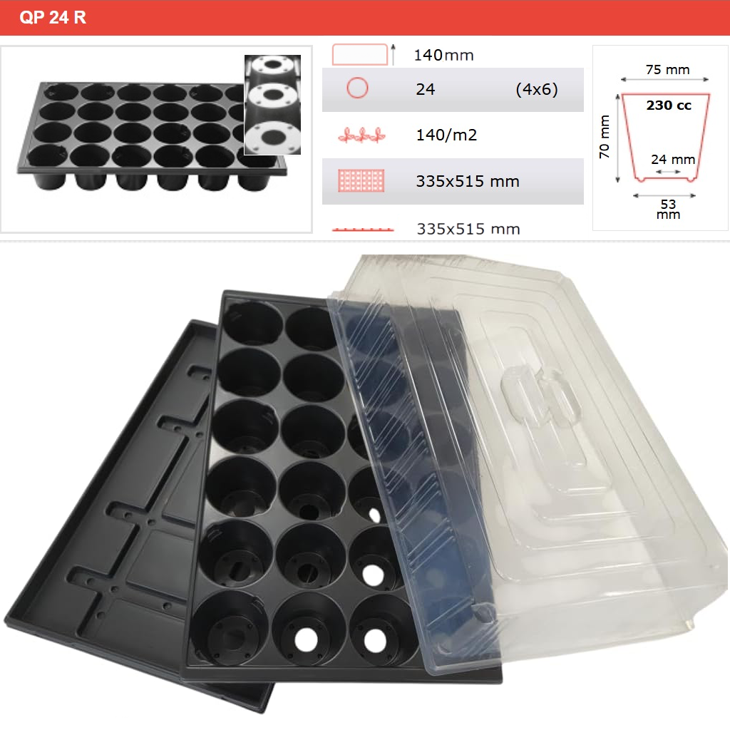 Quickpot Anzuchtsplatte mit 24 Pflanzlöchern + Untersetzer + Haube QP-24R