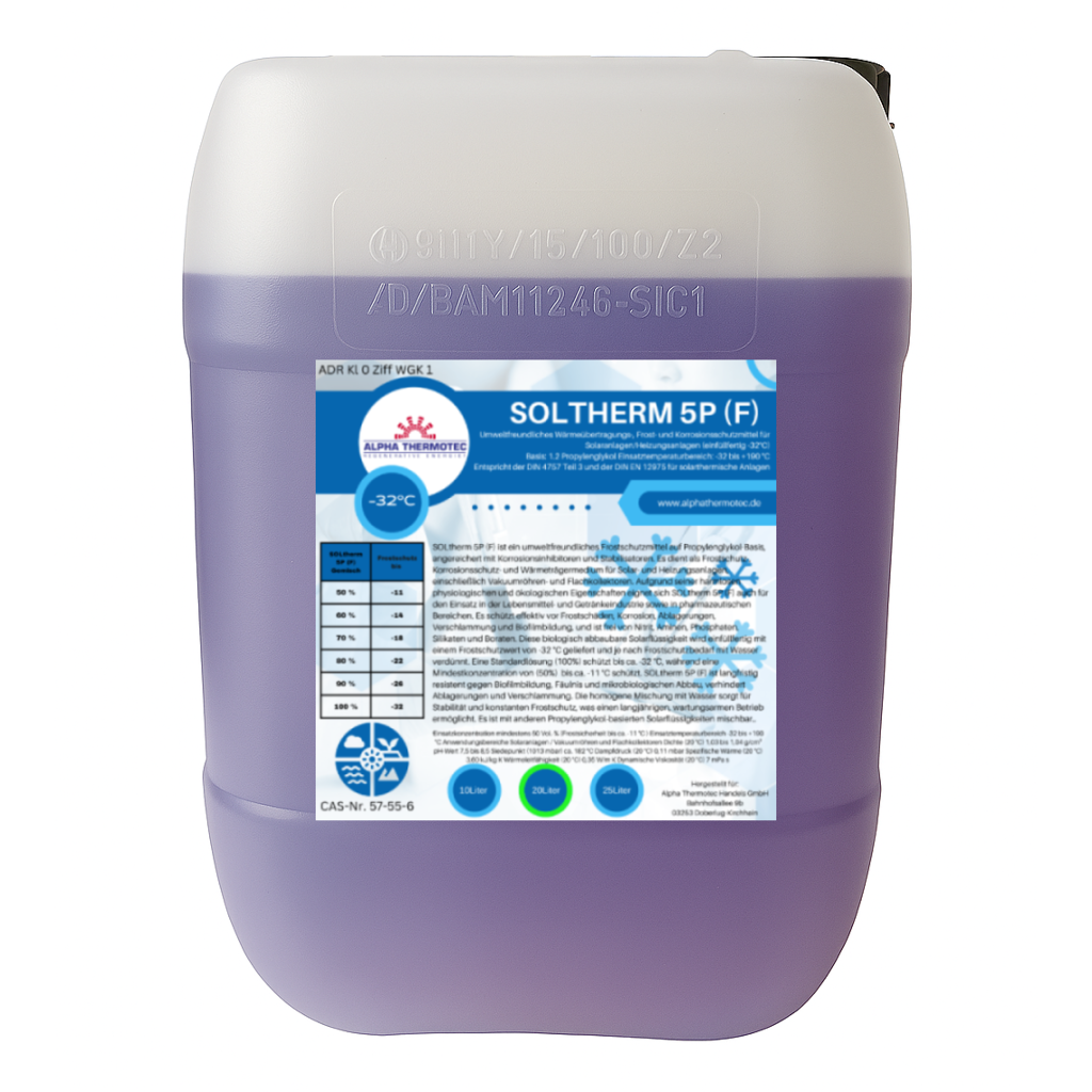Solarflüssigkeit HT gebrauchsfertig Gemisch oder Konzentrat für Röhren- und Flachkollektoren SOLtherm 5 (Konzentrat -58°C) und SOLtherm F (einfüllfertig -32°C) für hohe Temperaturen!!!